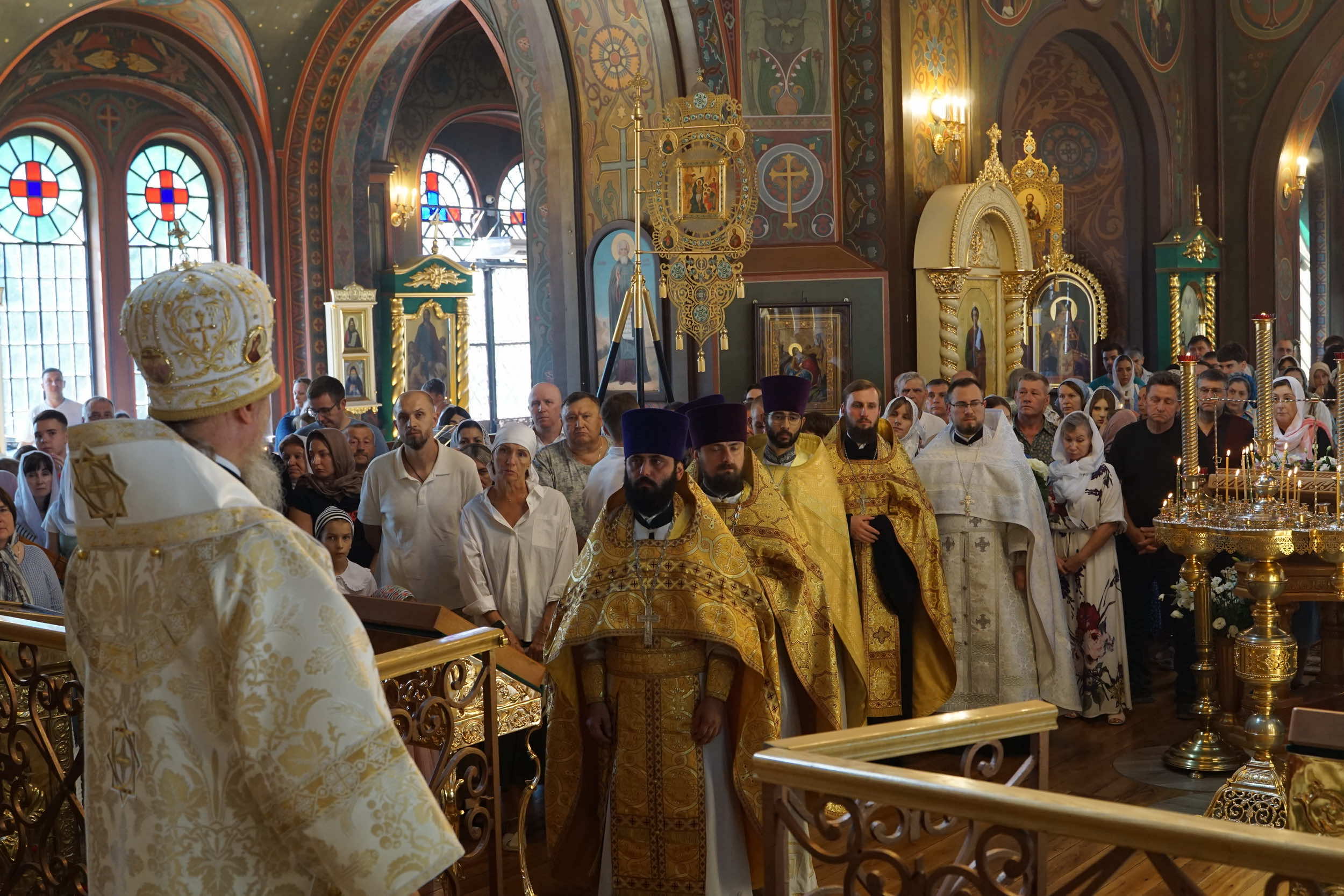 В завершение богослужения митрополит Василий произнес проповедь, поздравил духовенство, молящихся, учащих и учащихся с воскресным днем и началом нового учебного года.