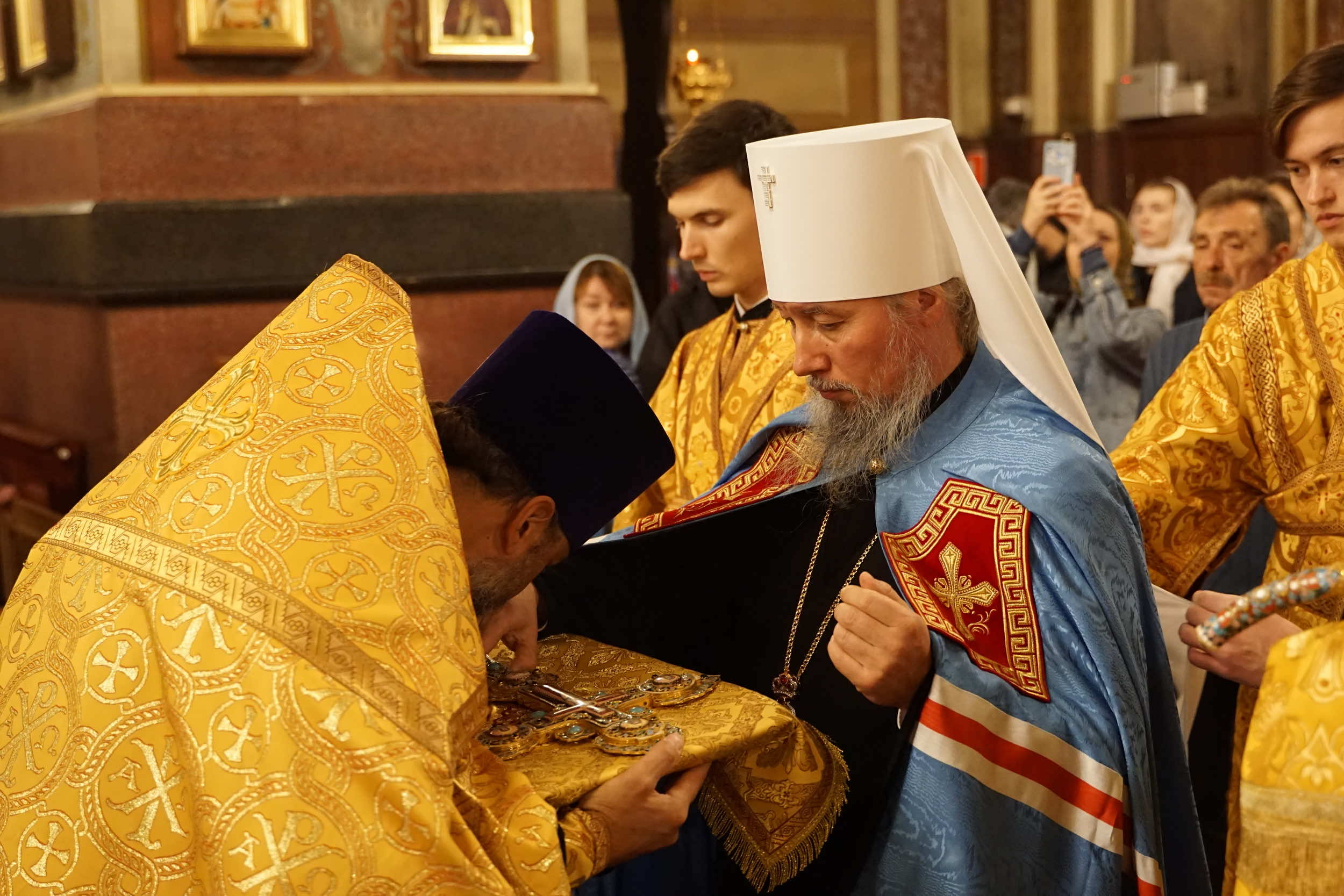 Его Высокопреосвященству сослужили: благочинный 1-го Краснодарского благочиния, настоятель Свято-Екатерининского собора иерей Рафаил Резниченко; клирики Свято-Екатерининского собора: протоиерей Павел Беловолов, протоиерей Николай Анисимов, иерей Максим Ханов, иерей Михаил Еремин, иеромонах Даниил (Дерягин), протодиакон Владимир Зиновьев, диакон Андрей Тесля, диакон Никита Мельничук и диакон Никита Бондаренко.