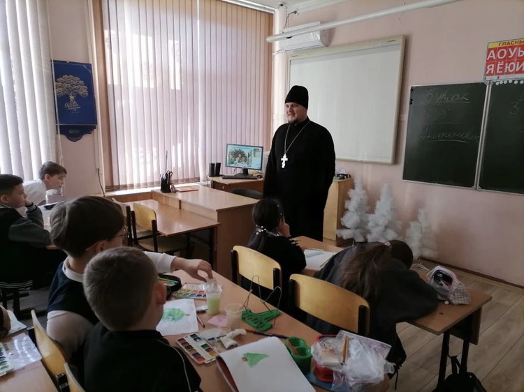 Иерей Герман Гайт провел урок в казачьем классе школы № 19 города Краснодара