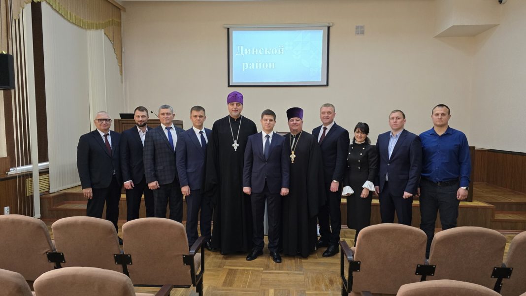 Благочинный 14-го Динского округа протоиерей Иоанн Лапко и благочинный 15-го Динского округа протоиерей Владимир Рошко благословили на начало ответственного служения. Священнослужители обратились к Игорю Сергеевичу Федосову с пастырским словом и пожелали ему крепости душевных и телесных сил, мудрости в принятии решений и неоскудевающей помощи Божией в его дальнейших трудах на благо жителей Динского района.