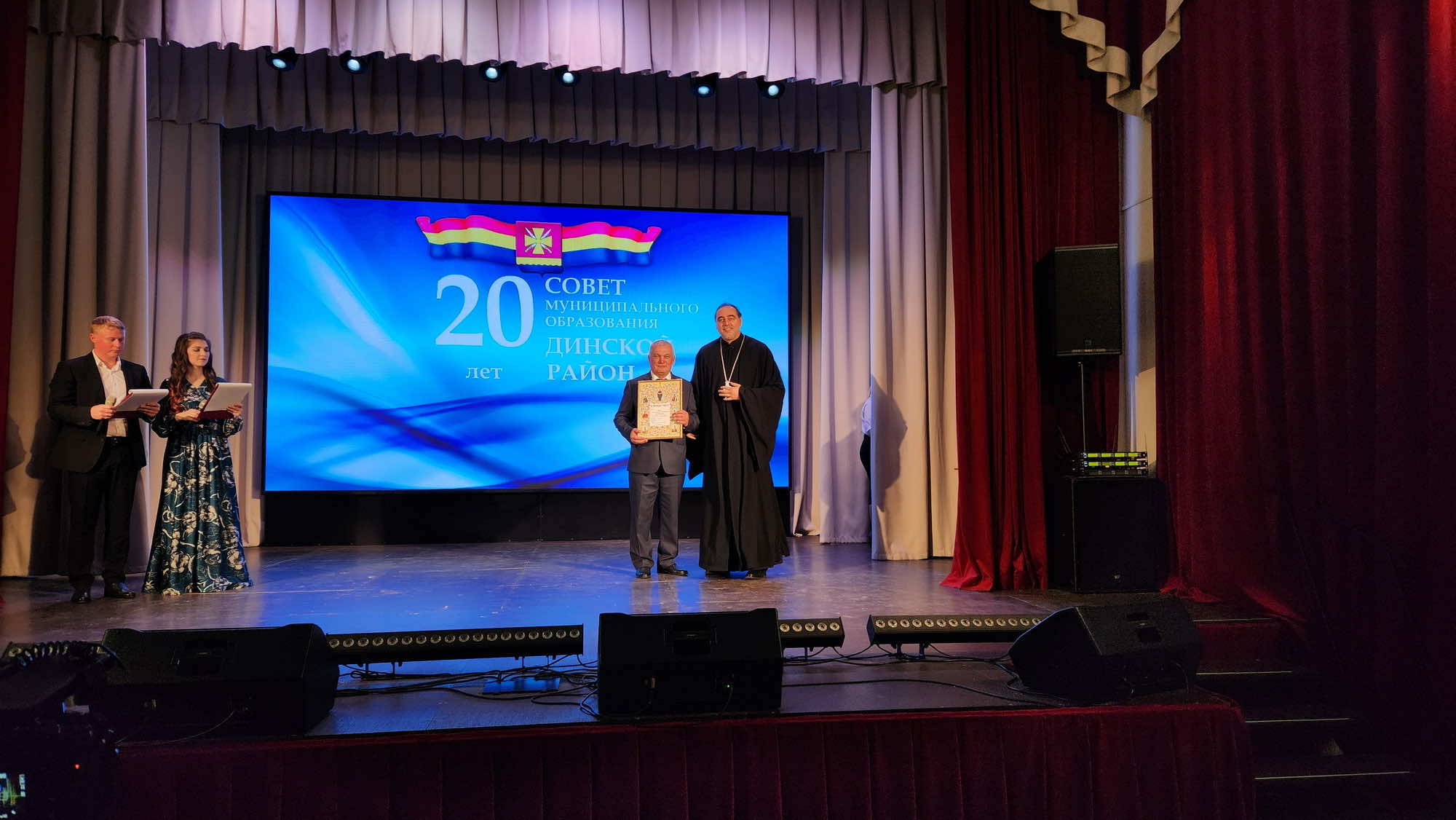 Благочинного 14-го Динского районного благочиннического округа, протоиерея Иоанна Лапко наградили юбилейным знаком. В свою очередь отец Иоанн поздравил Совет и вручил благодарственную грамоту от имени митрополита Екатеринодарского и Кубанского Василия, что символизирует признание заслуг Совета перед церковной общиной и всем населением Динского района.