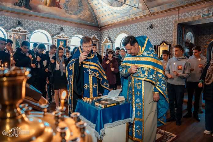В преддверии праздника Покрова Пресвятой Богородицы состоялась встреча благочинного 15-го Динского районного округа протоиерея Владимира Рошко и его помощника по молодёжной работе протоиереем Феодором Барановским с учащимися 5-х, 10-х и 11-х классов школ № 29, № 34, № 35, а также волонтеров Дома культуры станицы Новотитаровской.
