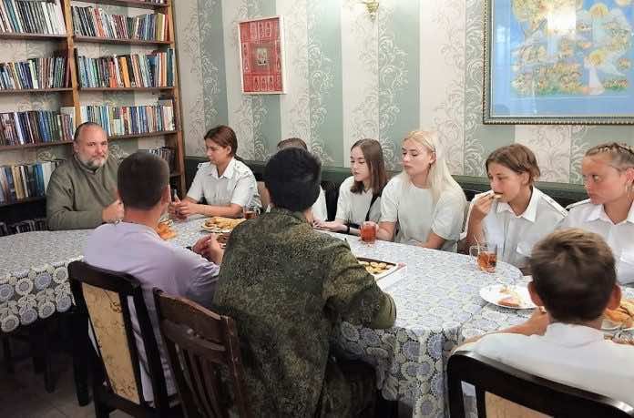 Батюшка с казачатами говорили о патриотизме, его духовных основах, о любви к ближнему, о проблеме убийства на войне и, конечно, о героизме. Обсудили отношение Церкви к военной службе, а также то, что православная вера поддерживает обязанность мужчины — защищать свою Родину.
