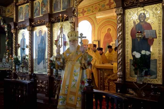 10 ноября 2019 г., в день памяти святителя Димитрия Ростовского, митрополит Екатеринодарский и Кубанский Исидор совершил Божественную литургию в Троицком храме станицы Динской.