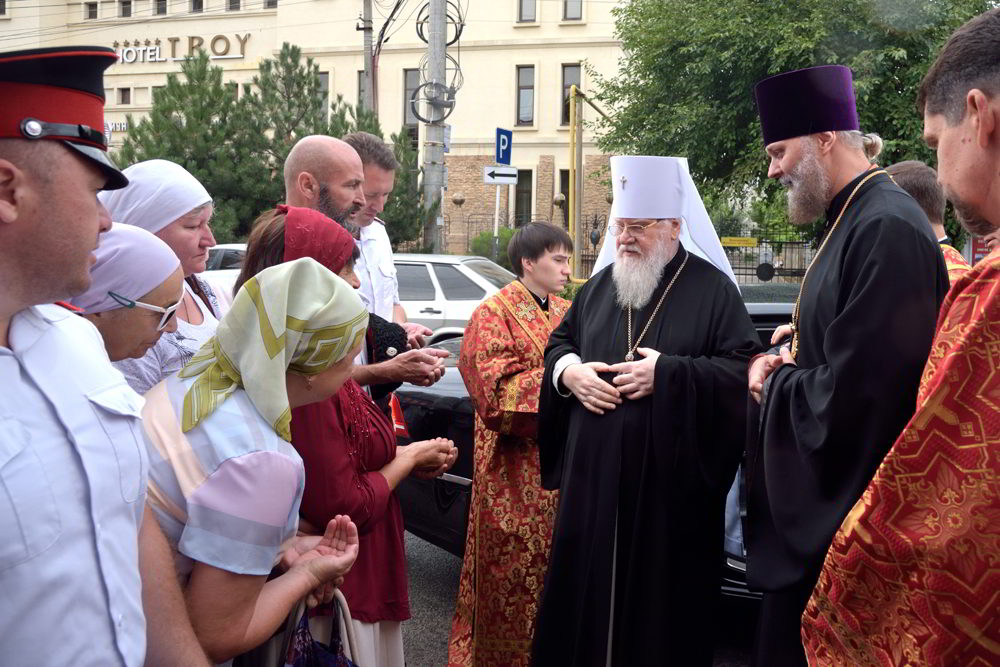 Его Высокопреосвященству сослужили секретарь Екатеринодарской епархии протоиерей Евгений Хаджипараш, благочинный церквей Второго Прикубанского округа г. Краснодара настоятель храма святителя Спиридона Тримифунтского иерей Иларион Максимец, настоятель храма в честь великомученика и целителя Пантелеимона г. Краснодара протоиерей Константин Капранов, храмовое духовенство. Диаконский чин возглавил протодиакон Сергий Мрачко.
