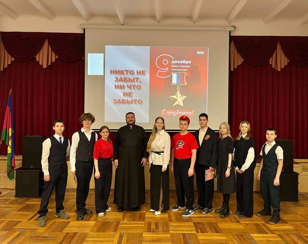 8 декабря 2025 года штатный диакон храма Покрова Пресвятой Богородицы города Краснодара отец Евгений Дасов принял участие в мероприятии, посвящённом Дню героев Отечества, в 44-й гимназии имени Михаила Тальского.