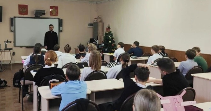 В школе №1 города Горячий Ключ состоялся необычный урок для пятиклассников. Его провёл клирик Троицкого храма диакон Илия Мигалко.