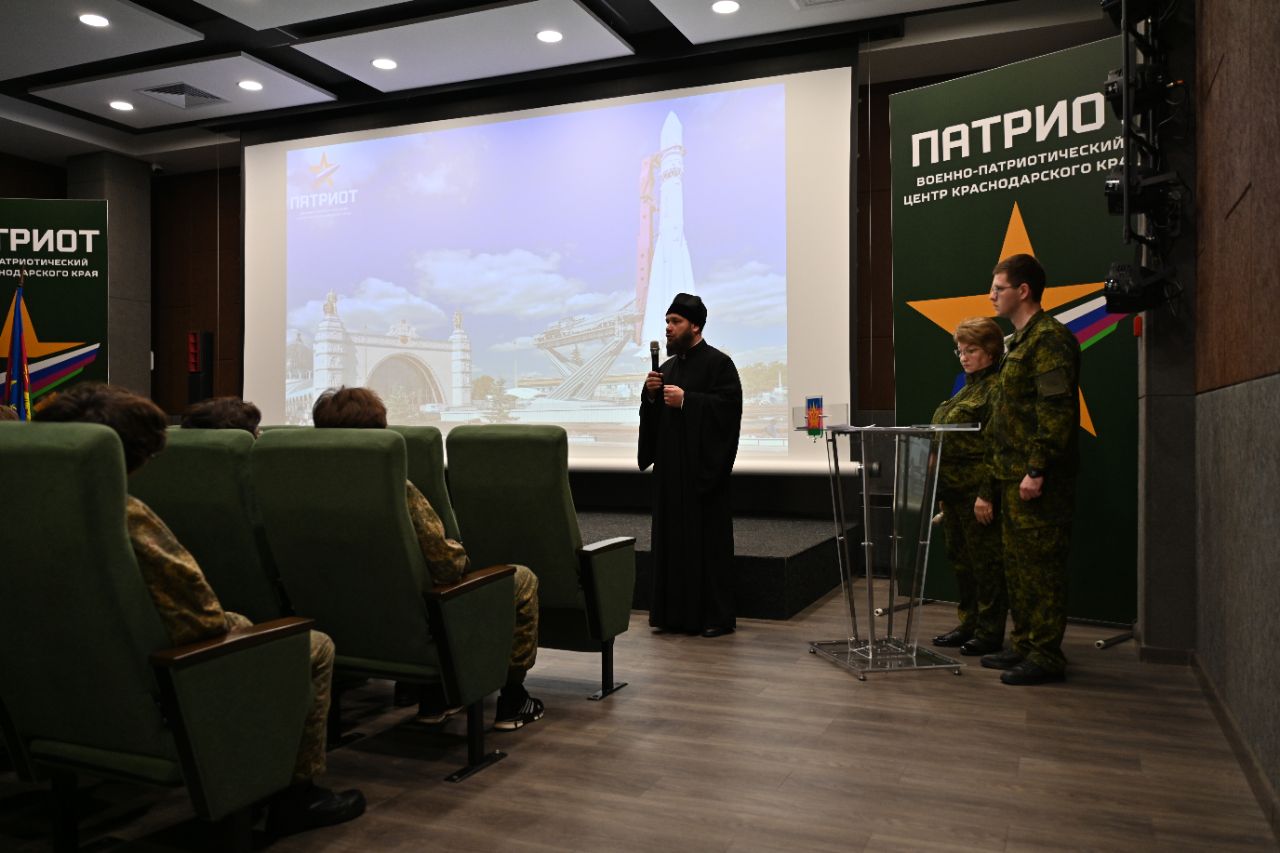 По благословению благочинного 14-го Динского округа протоиерея Иоанна Лапко слово о вере и космосе сказал штатный клирик храма Святой Троицы станицы Динской, помощник благочинного по миссионерскому служению диакон Роман Ермаков.