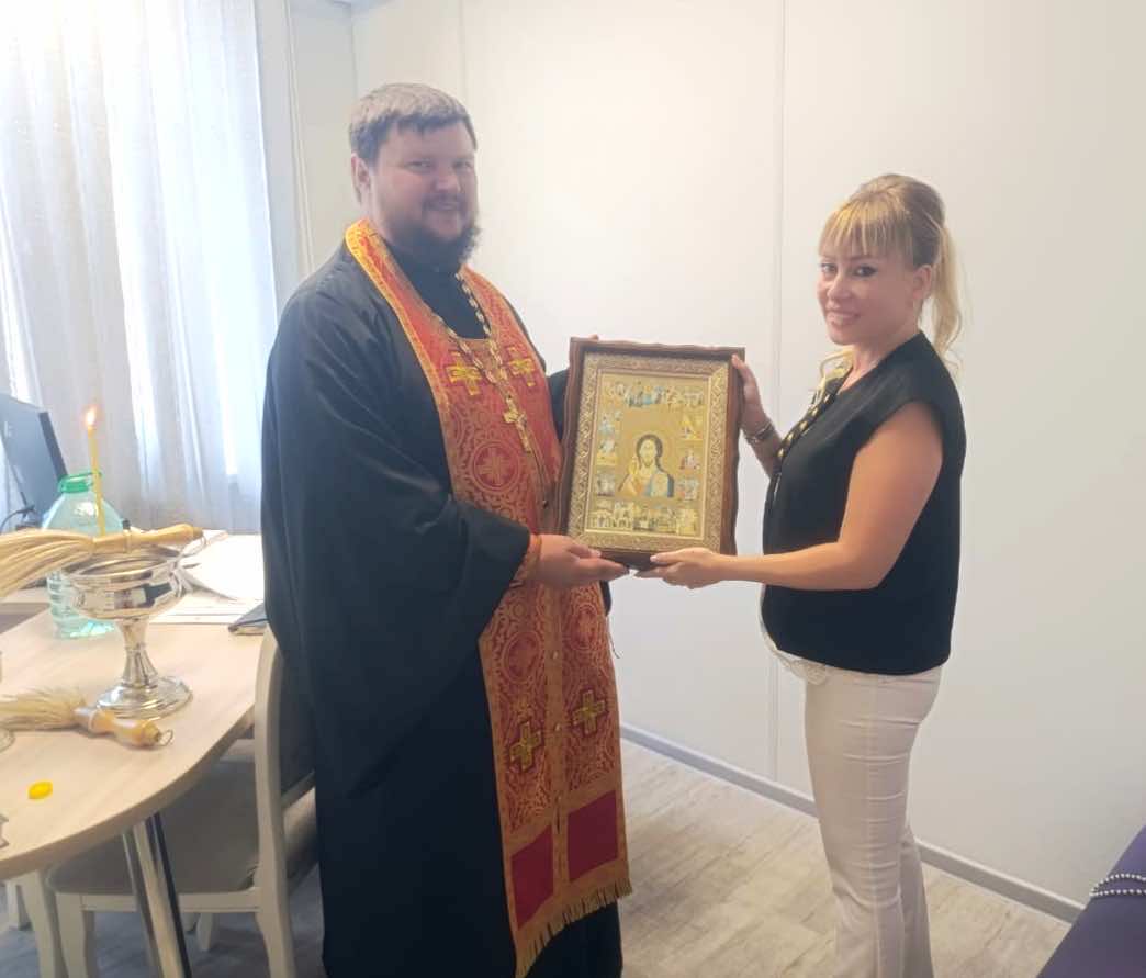 Иерей Вячеслав от имени благочинного передал директору школы Анне Сергеевне Каменецкой икону Спасителя и пожелал помощи Божией, любви и терпения в непростом и ответственном труде воспитания подрастающего поколения.
