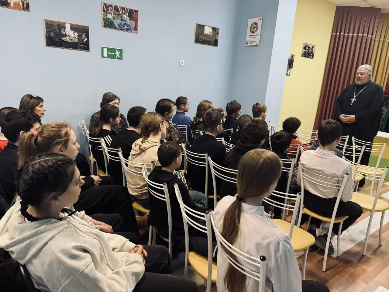 Отец Кирилл рассказал ребятам о значении постного времени, важности покаяния и добрых дел. Учащиеся с интересом слушали священника и задавали вопросы. По окончании беседы все участники сделали общую фотографию на память. Стороны договорились о проведении подобных встреч и в дальнейшем.