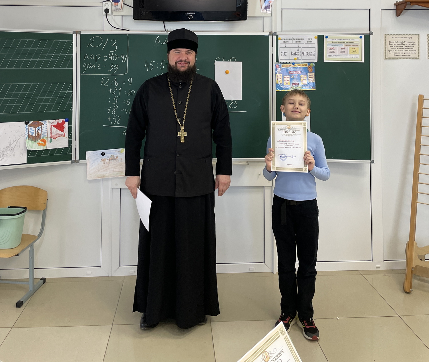 Сегодня отец Дмитрий на уроке духовной нравственности поздравил каждого участника, вручил грамоты и пожелал дальнейшего развития в учебной деятельности.