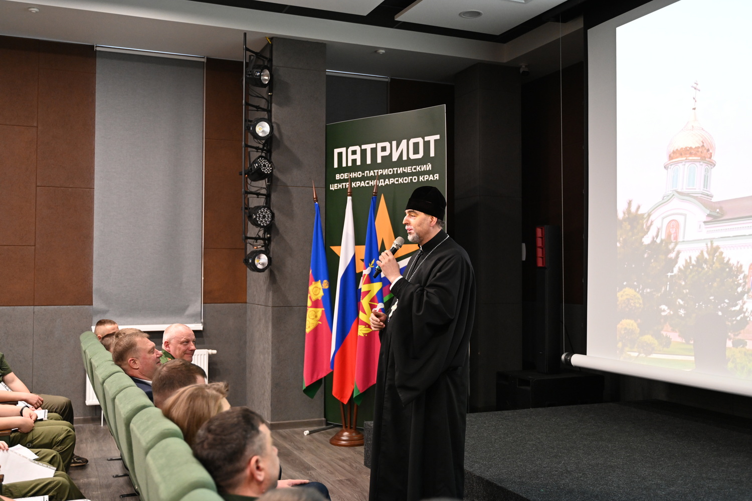 На торжественном закрытии сборов благочинный 14-го Динского округа, настоятель храма святого мученика Иоанна Воина в центре «Патриот» протоиерей Иоанн Лапко обратился к юным гостям с пастырским напутствием, подчеркнув единство нашей земли, истории и веры.