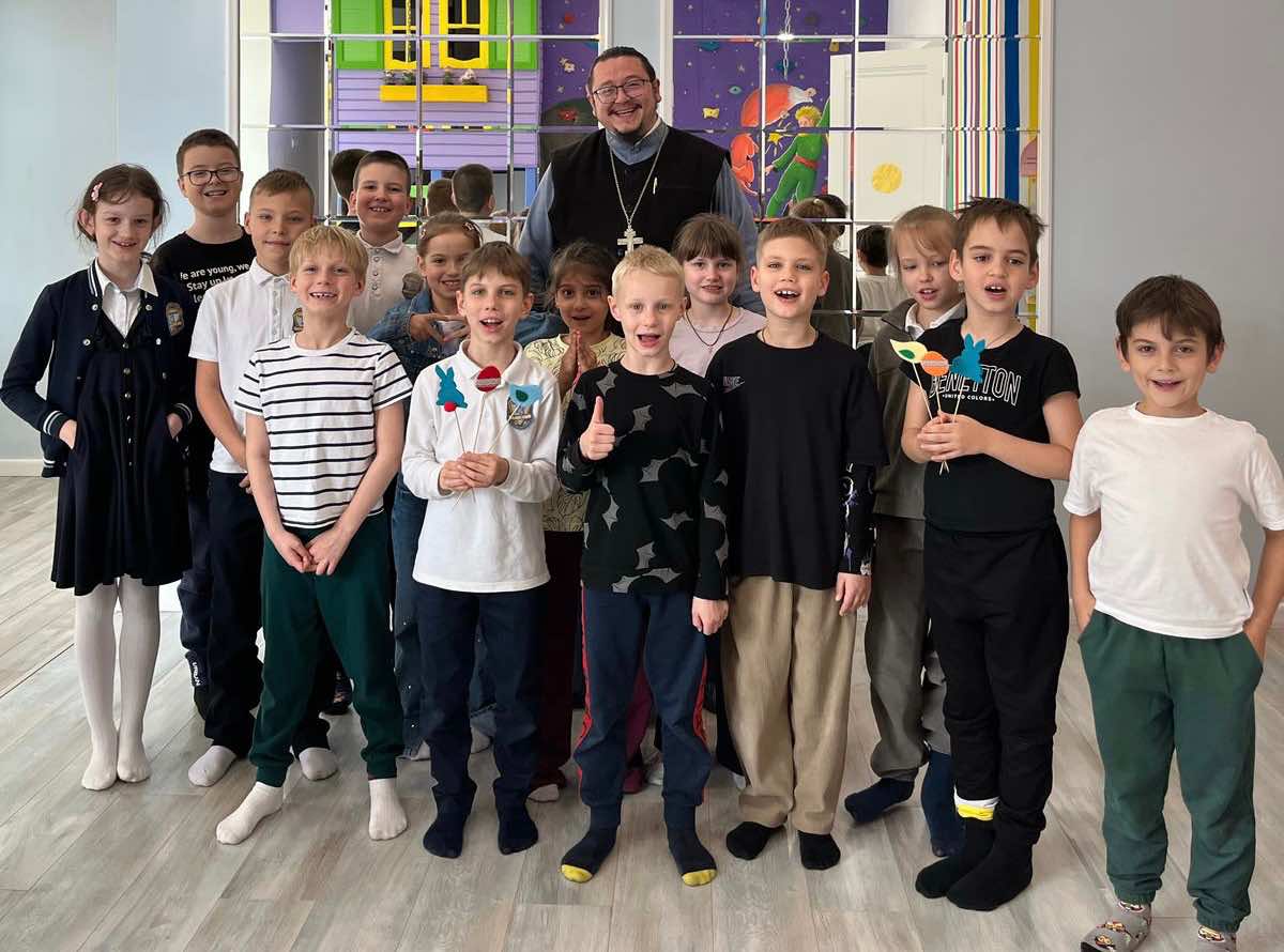 Сегодня, 15 апреля, штатный священник Свято-Сергиевского храма города Краснодара иерей Александр Мачадо Сахнов провёл предпасхальную беседу с детьми частного образовательного центра «Kid’s Care», находящегося в Краснодаре.
