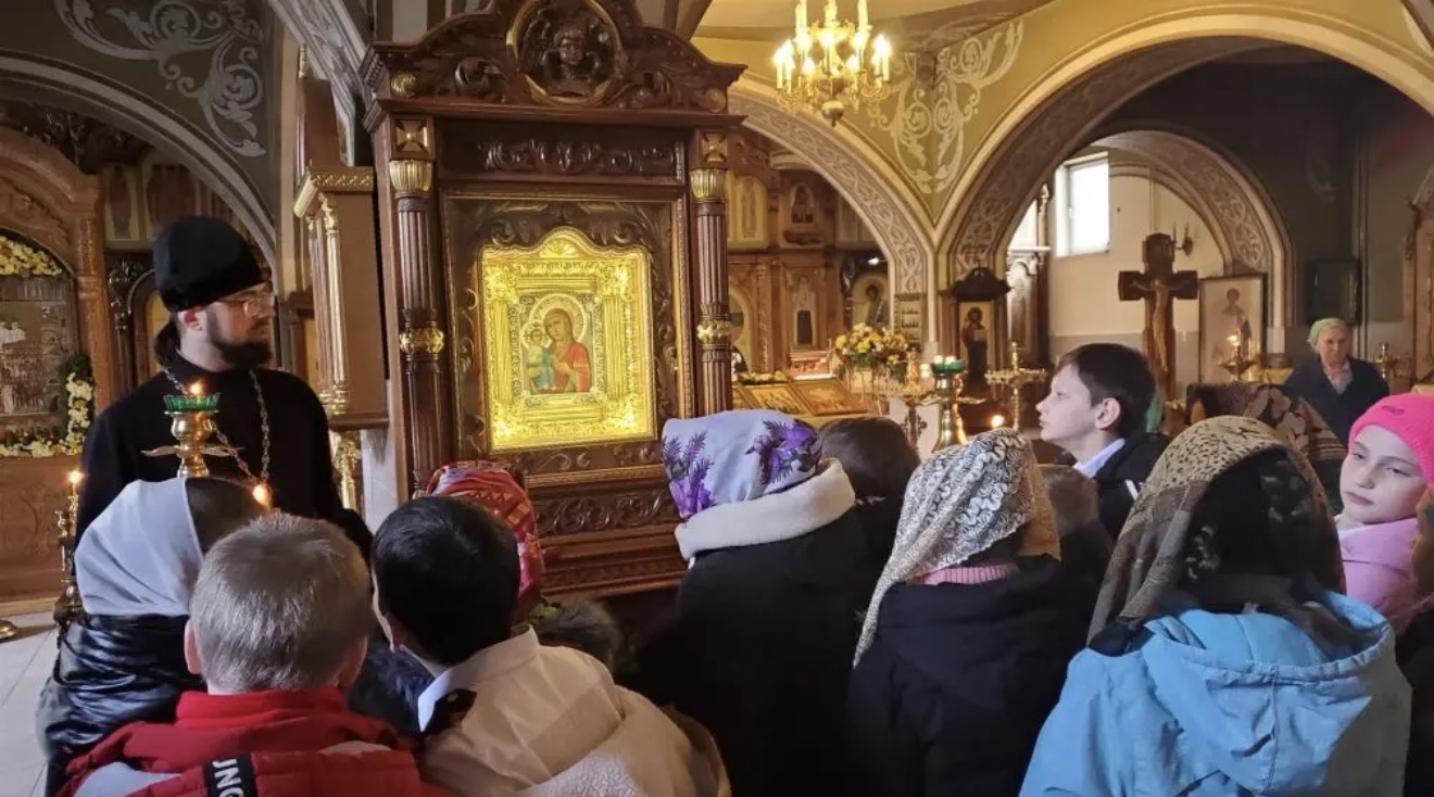 Священник рассказал школьникам об устройстве православного храма и его главных святынях. Также отец Алексий объяснил детям значение приближающегося Великого поста. Особый отклик у ребят вызвала беседа о роли Русской Православной Церкви в годы Великой Отечественной войны. Вместе со священником дети рассмотрели баннеры с историческими фотографиями расположенные на территории храма и поговорили о важности веры, мужества и помощи ближнему в самые трудные для страны времена. В завершение встречи отец Алексий подарил школьникам и преподавателям памятные календарики.