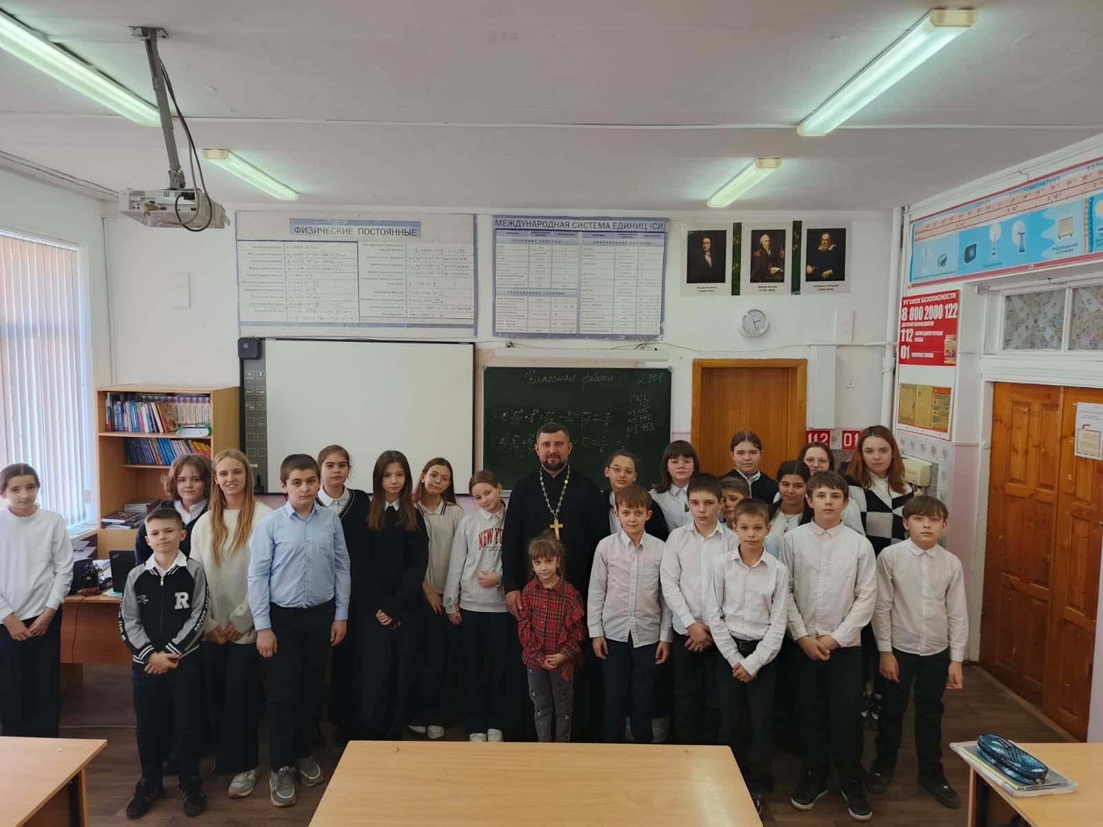 Штатный клирик храма Покрова Пресвятой Богородицы г. Краснодара иерей Андрей Овчинкин встретился с учениками школы № 14. Речь в беседе пошла о Заповедях Божиих и о том, почему в Законе Божием закреплено почитание родителей. Ученики узнали, что в пятой Заповеди есть не только предписание почитать родителей, но и обещание долгой жизни для тех, кто эту Заповедь исполняет. В завершение беседы отец Андрей пригласил слушателей на богослужения и воскресные занятия для детей.
