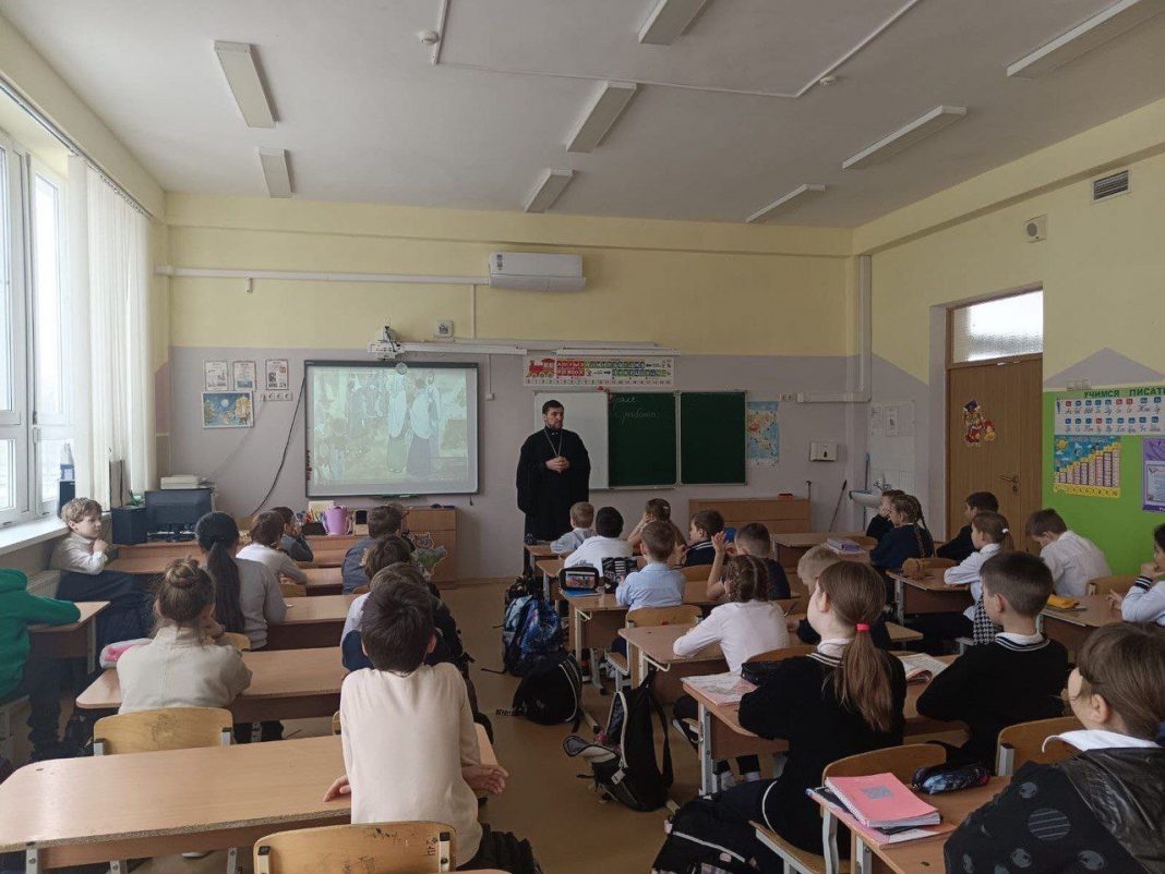 Настоятель храма Преображения Господня поселка Южного священник Давид Кочаров посетил МАОУ СОШ № 15 имени Героя Советского Союза Виктора Ивановича Гражданкина.