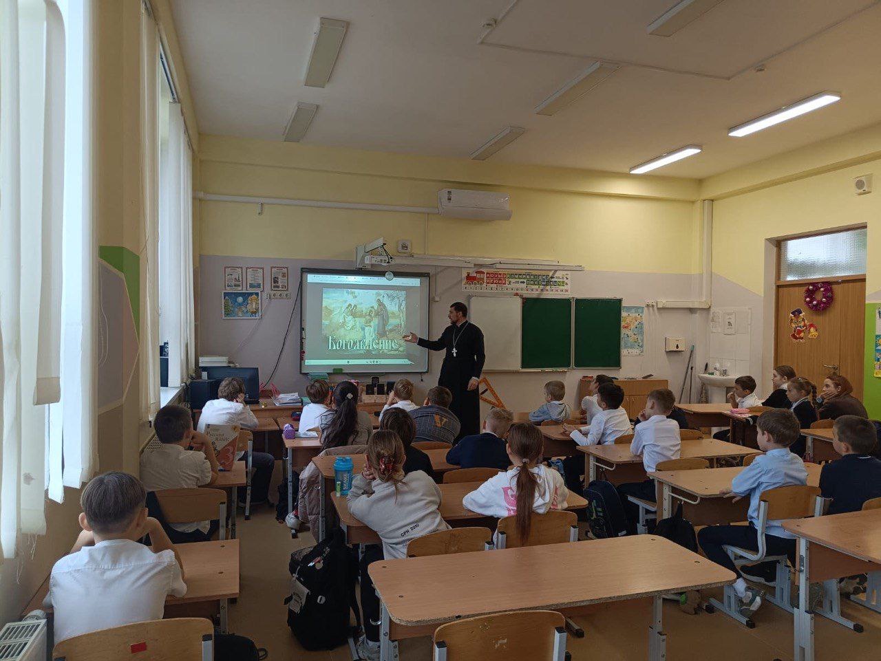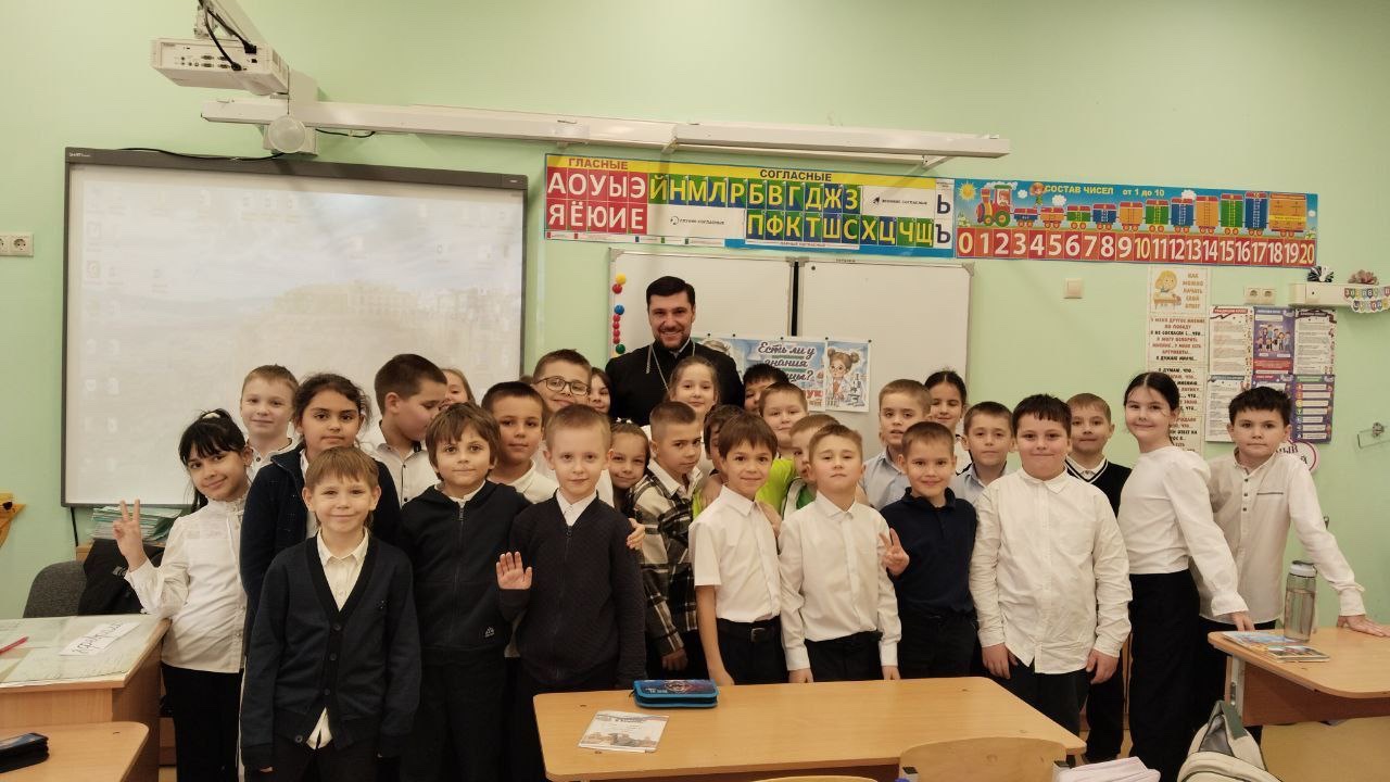 Отец Давид провел уроки для учеников начальных классов, посвященные празднику Крещения Господня. Ребята узнали об истории праздника и смысле Богоявления. Священник также затронул тему подготовки к Великому посту, рассказав о необходимости приготовления к нему как тела, так и души. Урок прошел в формате диалога. Школьники с интересом слушали отца Давида, задавали вопросы и обсуждали свойства святой воды.