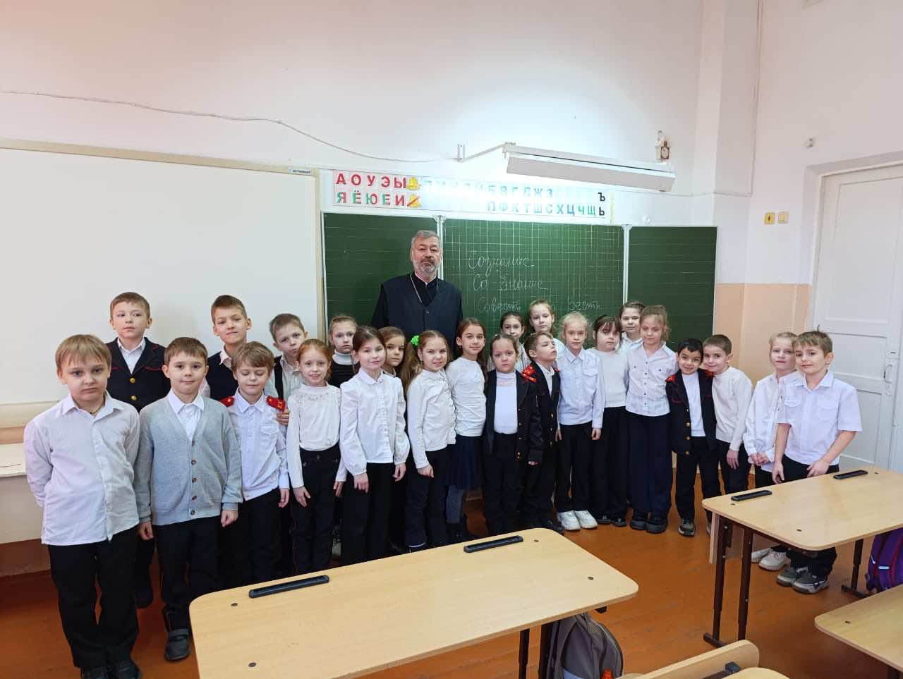 По благословению настоятеля храма Вознесения Господня в поселке Пашковском протоиерея Георгия Меденцева штатный клирик храма иерей Евгений Ромазев посетил СОШ № 60 и провел урок духовности. Дети активно и искренне участвовали в обсуждении, посвященном теме совести,  а также с интересом задавали вопросы.