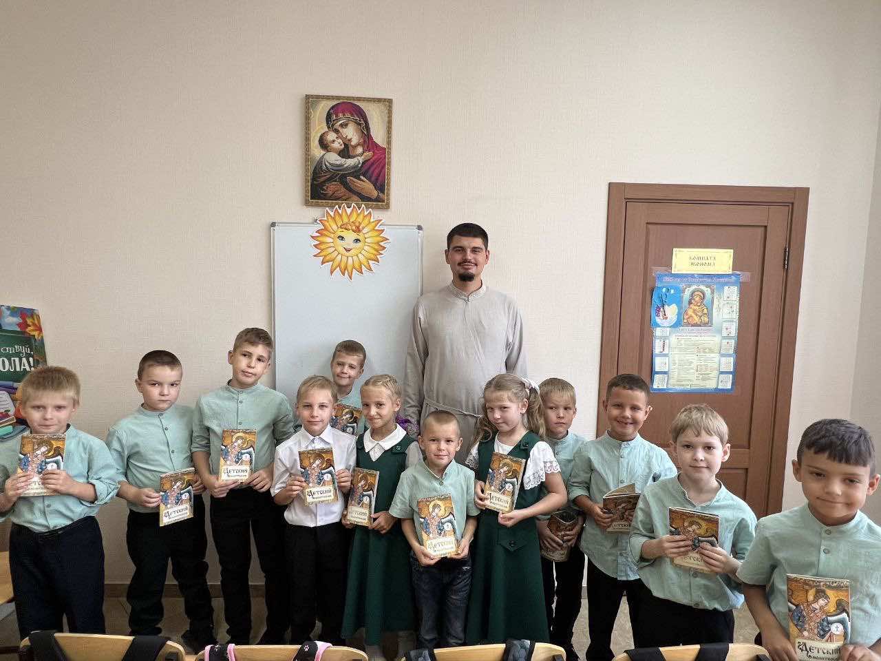 Особенным стал момент для самых юных учеников. Отец Иоанн встретился с первоклассниками, которые только начинают свой путь познания не только школьных наук, но и основ православной веры. В качестве духовного напутствия и подарка священник вручил каждому ребенку детский молитвослов. Эти яркие и понятные книги помогут малышам сделать первые шаги в ежедневной молитве.