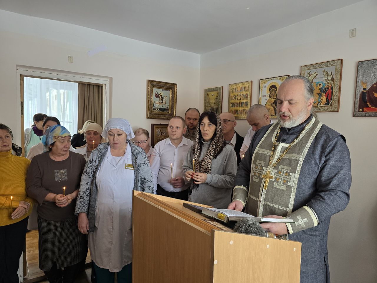 Вместе с ним в стенах учреждения собрались руководители, медицинский и технический персонал, а также пациенты. В молитвенной комнате, в атмосфере общей сосредоточенности и ожидания, отец Максим совершил чин Великого освящения воды.