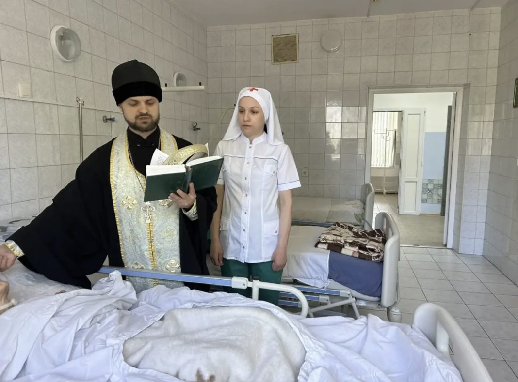 Священник совершил Таинство Елеосвящения (Соборования) над семью подопечными учреждения. Помогала священнику и ухаживала за тяжелобольными сестра милосердия, которая проявила особое внимание и заботу к каждому из присутствующих.