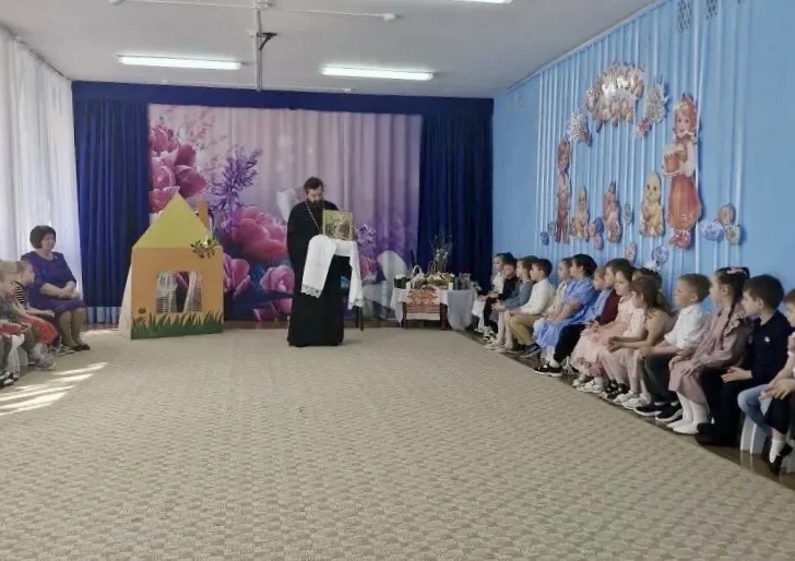 Настоятель храма Вознесения Господня станицы иерей Павел Максимец посетил детский садик № 26 посёлка Украинского.