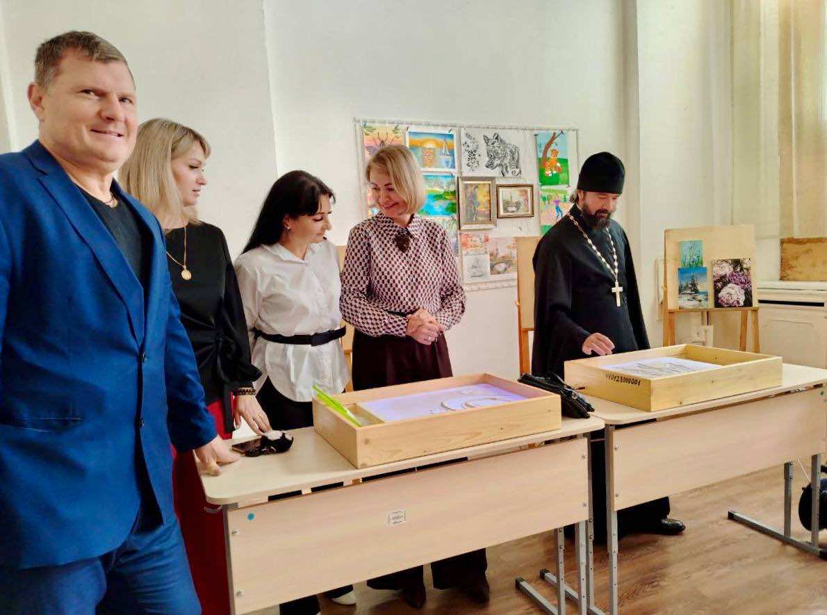 В программе праздника были представлены серия мастер-классов от педагогов Дома творчества. Особое внимание привлекло занятие по рисованию песком, в котором принял участие отец Павел.