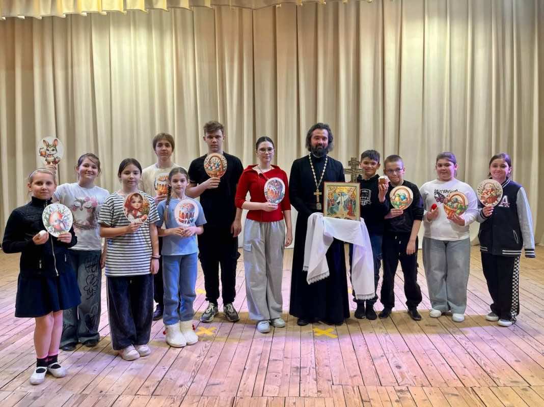 Кроме того, отец Павел рассказал детям о традиционном пасхальном куличе. Он сравнил его с церковным куполом, отметив, что кулич не только красив внешне, но и является символом, который напоминает о том, что жизнь человека должна быть наполнена добродетелями.