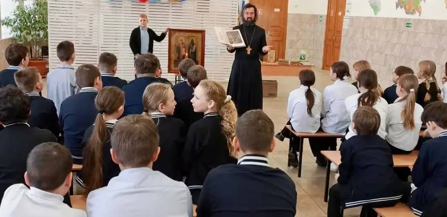 Иерей Павел Максимец провел познавательную встречу с учащимися школы № 6 станицы Пластуновской