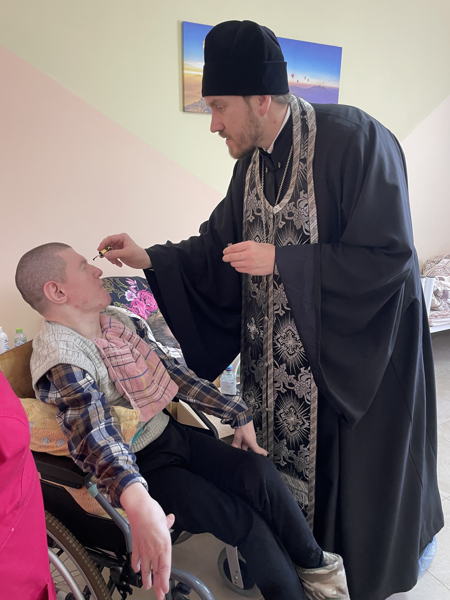 Пожилые люди и инвалиды, проживающие в данном учреждении, не могут посещать богослужения по состоянию здоровья, поэтому всегда с нетерпением ждут прихода священнослужителя и с радостью участвуют в Церковных Таинствах.