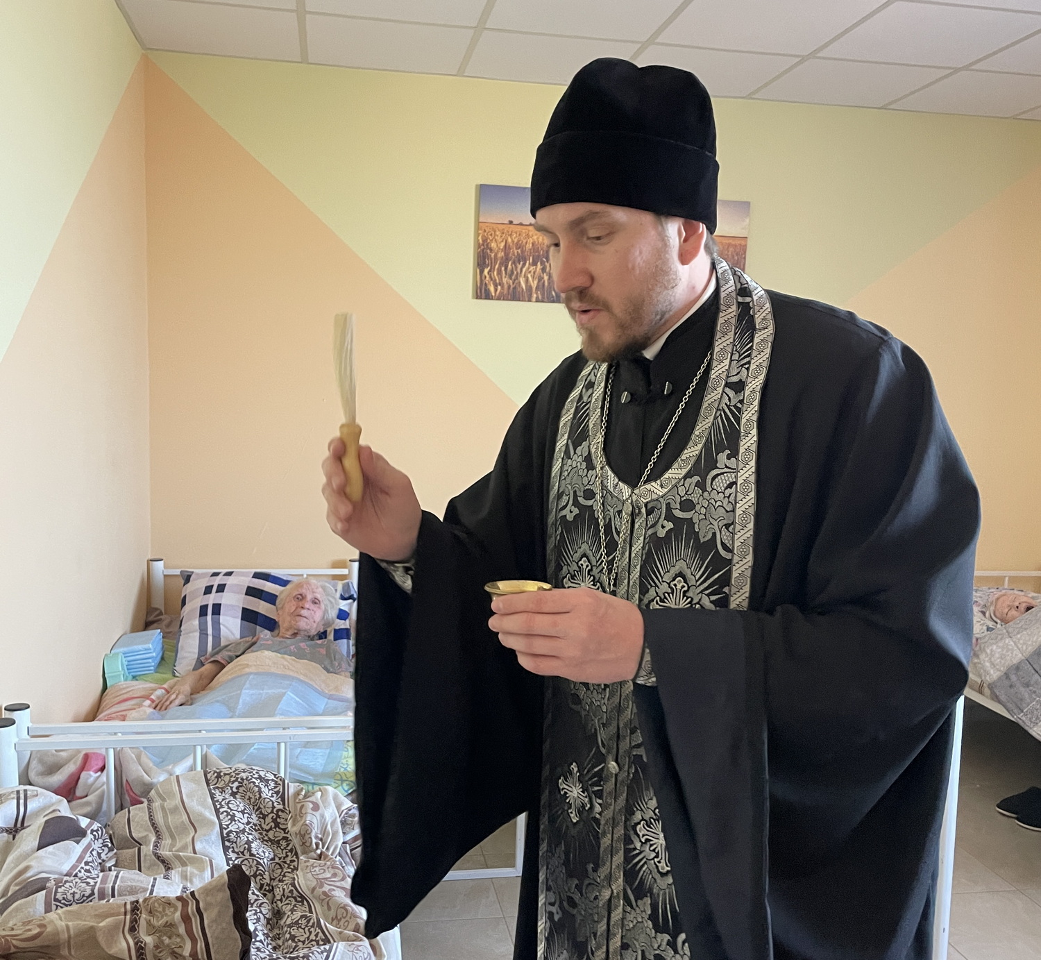 Пожилые люди и инвалиды, проживающие в данном учреждении, не могут посещать богослужения по состоянию здоровья, поэтому всегда с нетерпением ждут прихода священнослужителя и с радостью участвуют в Церковных Таинствах.