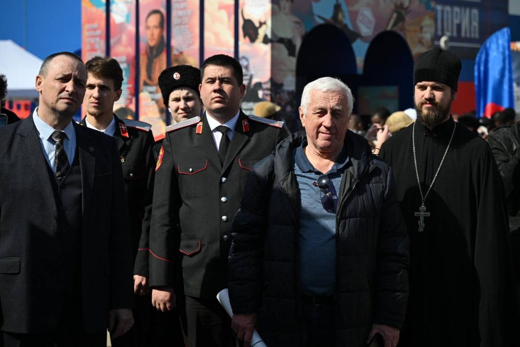В торжественной церемонии приняли участие почётные гости: заместитель министра образования и науки Краснодарского края Крившенко Сергей Владимирович, заместитель директора по развитию Фонда Гуманитарных проектов Тарасов Александр Николаевич и руководитель мобильных исторических парков «Россия-Моя история» Виноградов Максим Васильевич, руководитель Издательского отдела Екатеринодарской и Кубанской епархии, ответственный за взаимодействие с историческим парком «Россия-Моя история» иерей Вячеслав Куприенко.