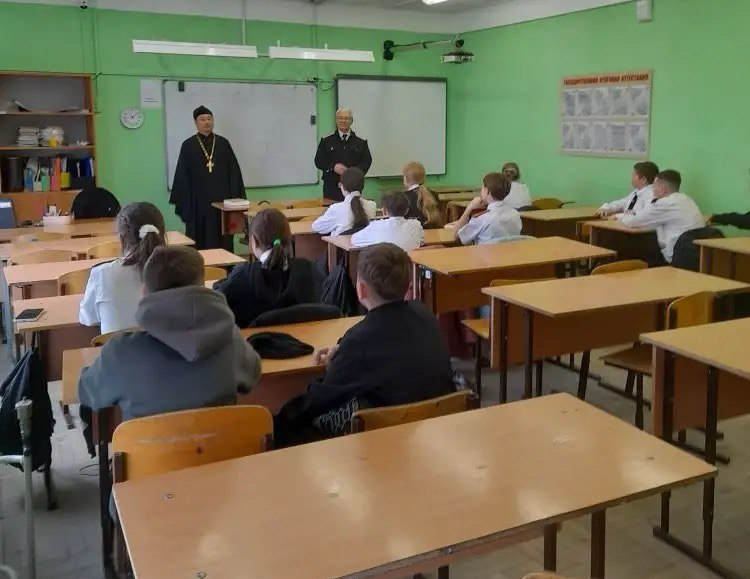 Штатный священник храма иерей Вячеслав Ли встретился с воспитанниками казачьего класса средней общеобразовательной школы № 93. В ходе живой и познавательной беседы отец Вячеслав рассказал школьникам о глубоком смысле важнейших христианских праздников — Рождества Христова и Богоявления, а также затронул основы православного мировоззрения на примерах Священной истории.