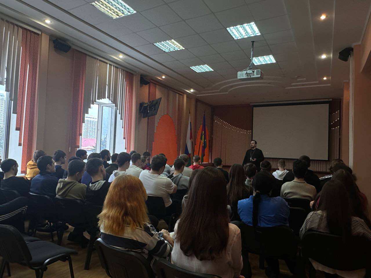 Штатный клирик храма Покрова Пресвятой Богородицы г. Краснодара иерей Владимир Иванов выступил перед первокурсниками Краснодарского торгово-экономического колледжа.