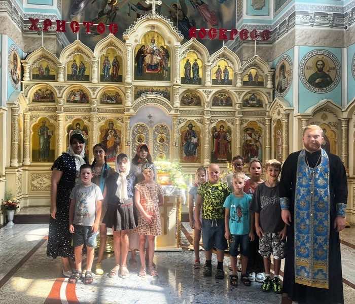 В светлый праздник Преображения Господа Бога и Спаса нашего Иисуса Христа Введенский храм станицы Динской посетили особые гости – дети, отдыхающие на летней площадке «Калейдоскоп» при Доме культуры по ул. Тельмана.