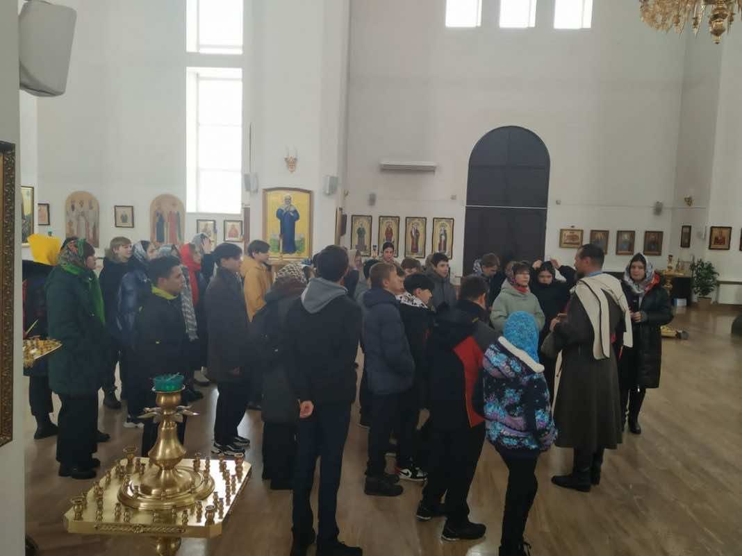 По благословению настоятеля храма Вознесения Господня в Пашковке протоиерея Георгия Меденцева казаками Пашковского станичного казачьего общества была организована экскурсия по храму для учеников 8 класса казачьей школы № 60. Казачата узнали много нового об устройстве храма, его убранстве, а также о том, какое важное значение имеет храм Божий в жизни каждого православного казака.