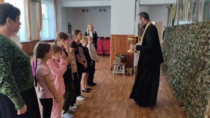 Отец Сергий окропил святой водой всех молящихся и саму маскировочную сеть, а затем обратился к школьникам с напутственным словом о важности поддержки российских воинов, принимающих участие в СВО, о верности Богу и Отечеству.