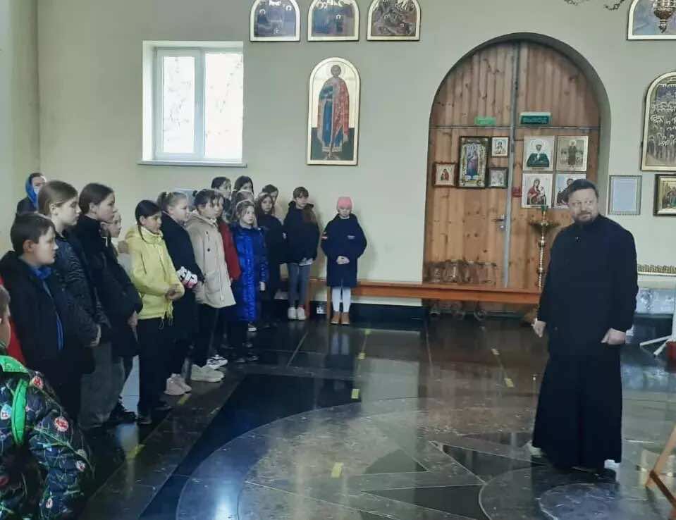Учащиеся казачьего класса школы № 4 г. Горячий Ключ побывали на экскурсии в храме Феодоровской иконы Божией Матери. Штатный клирик храма иерей Дионисий Семенников побеседовал с ребятами о празднике Сретения Господня и об особенностях его иконографии.