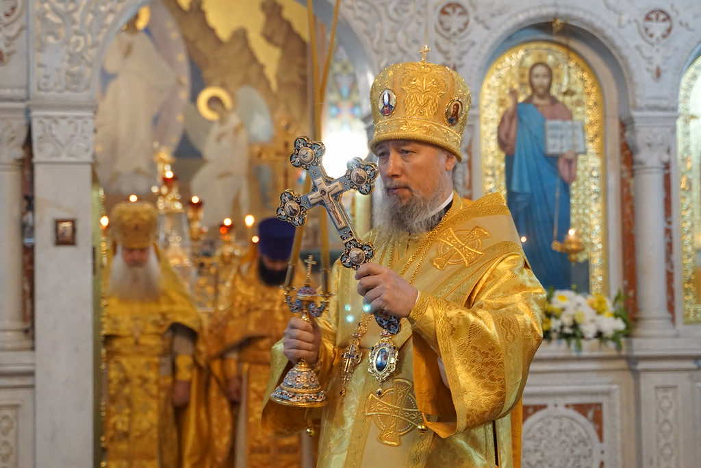 В завершение богослужения митрополит Василий поздравил духовенство и прихожан собора с престольным праздником и произнёс проповедь.
