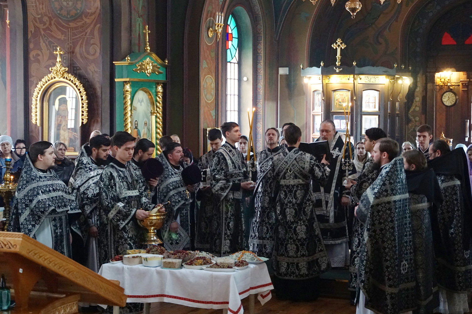 По завершении заамвонной молитвы владыка возглавил чин освящения колива.