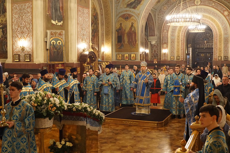 Его Высокопреосвященству сослужили: протоиерей Павел Беловолов, протоиерей Николай Анисимов, иерей Рафаил Резниченко, иерей Максим Ханов, иерей Михаил Еремин, иеромонах Даниил (Дерягин), иерей Вячеслав Миронов, протодиакон Владимир Зиновьев, диакон Андрей Тесля, диакон Георгий Моисеев, диакон Никита Мельничук.