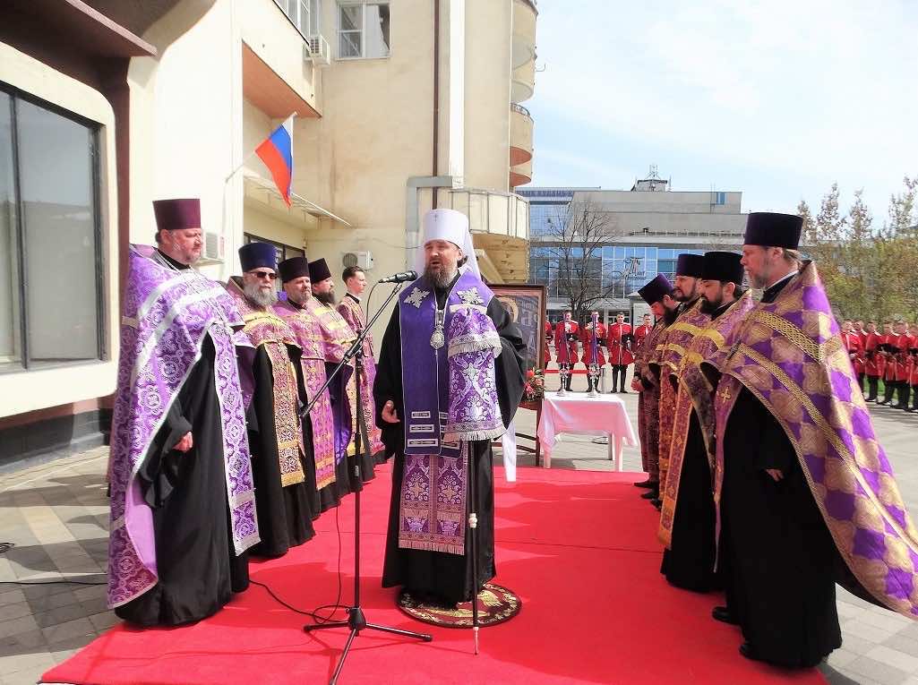 Владыка Григорий в сослужении духовенства совершил молебен на начало доброго дела. Песнопения исполнил хор студентов Екатеринодарской духовной семинарии.  Затем архипастырь обратился к участникам и гостям выставки с приветственным словом.