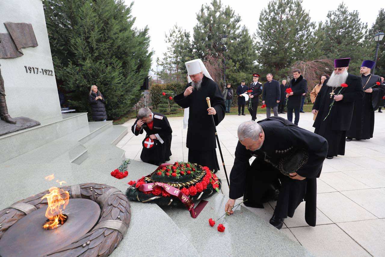 Церемония началась с поминальной панихиды, которую совершил настоятель Александро-Невского собора, духовник Кубанского казачьего войска протоиерей Иоанн Гармаш.
