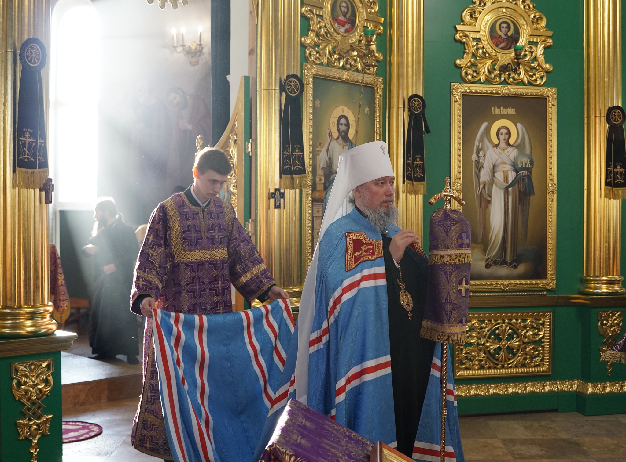 Его Высокопреосвященству сослужили: иерей Даниил Коровяков, иерей Константин Родичев, иерей Алексий Дрючин, иеромонах Даниил (Дерягин), иерей Вячеслав Миронов, диакон Андрей Тесля, диакон Никита Мельничук, диакон Андрей Холод, диакон Иоанн Щербенко.