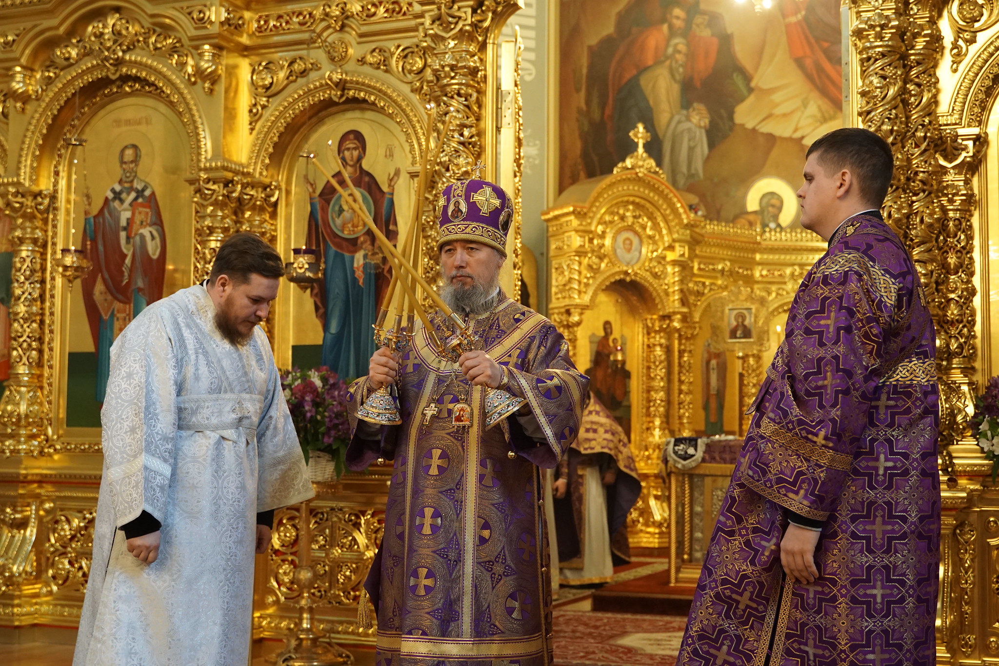 Его Высокопреосвященству сослужили: иерей Рафаил Резниченко, протоиерей Павел Беловолов, протоиерей Николай Анисимов, иерей Максим Ханов, иеромонах Александр (Дерягин), иеромонах Даниил (Дерягин), иерей Вячеслав Миронов, протодиакон Владимир Зиновьев, диакон Георгий Моисеев, диакон Никита Мельничук.