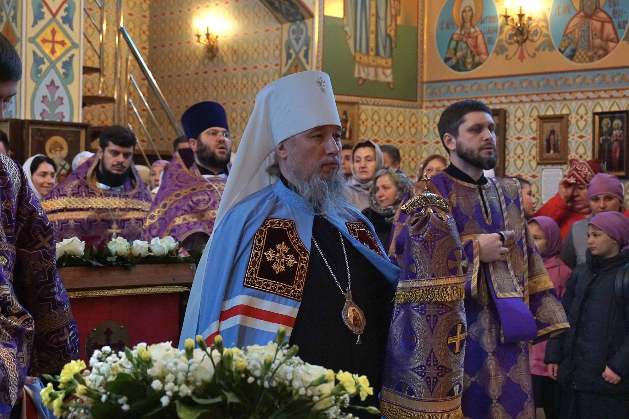 Его Высокопреосвященству сослужили: протоиерей Владимир Рошко, иерей Алексий Ругалёв, иерей Дионисий Пылаев, иеромонах Александр (Дерягин), иеромонах Даниил (Дерягин), иерей Вячеслав Миронов, диакон Никита Мельничук, диакон Александр Давиденко.