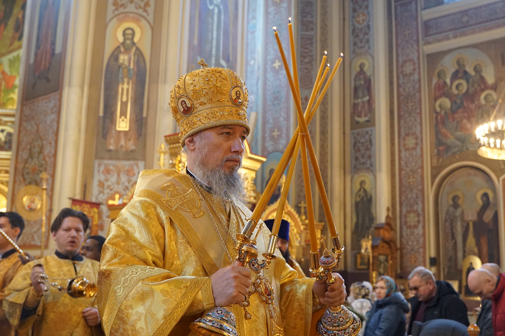 По окончании Литургии митрополит Василий произнес проповедь и поздравил духовенство и прихожан собора с воскресным днем.