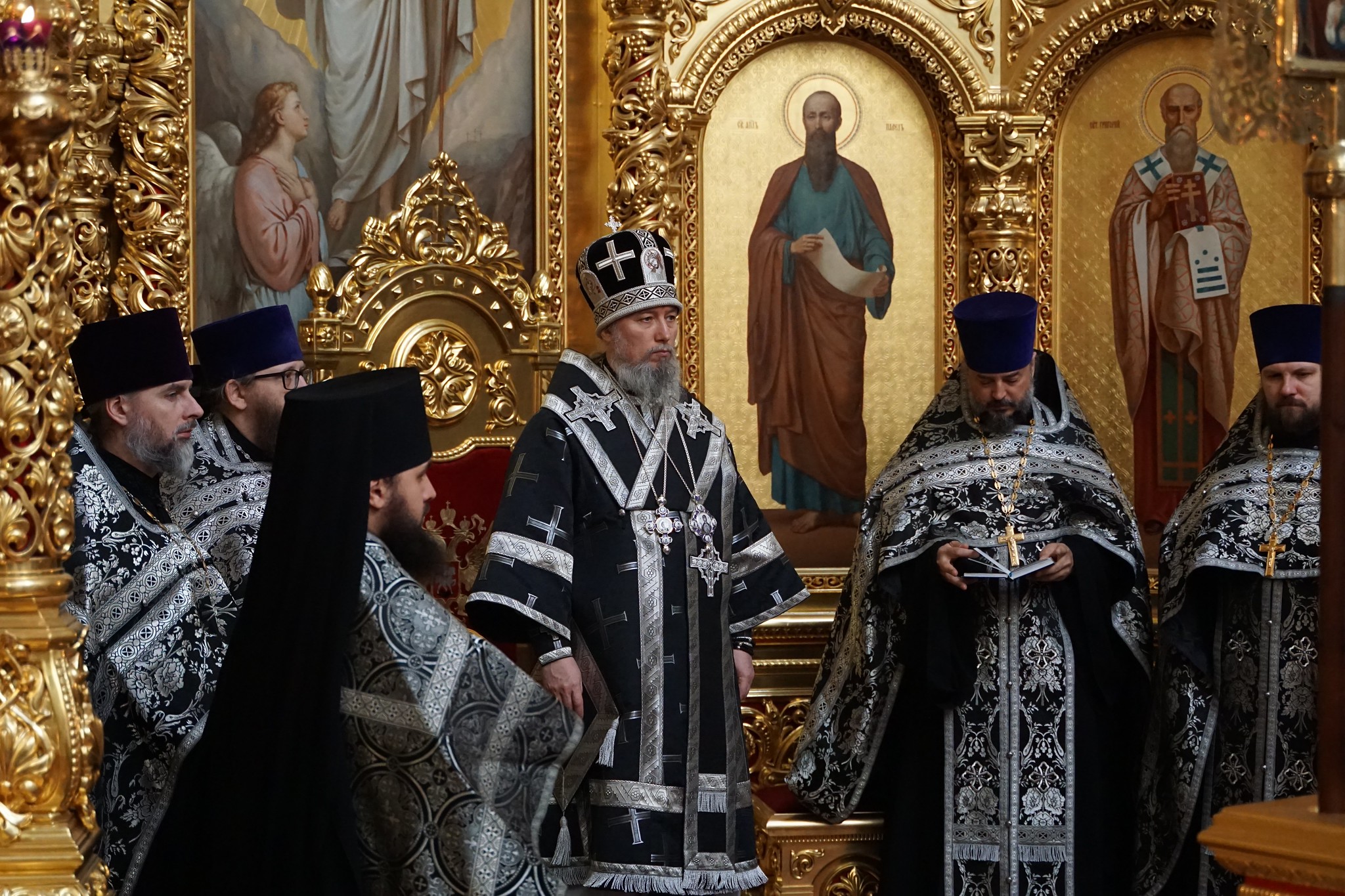 Его Высокопреосвященству сослужили: иерей Рафаил Резниченко, протоиерей Павел Беловолов, протоиерей Николай Анисимов, иерей Максим Ханов, иерей Михаил Еремин, иеромонах Александр (Дерягин), иеромонах Даниил (Дерягин), иерей Вячеслав Миронов, диакон Андрей Тесля, протодиакон Владимир Зиновьев, диакон Никита Мельничук, диакон Элизбар Заводовский.