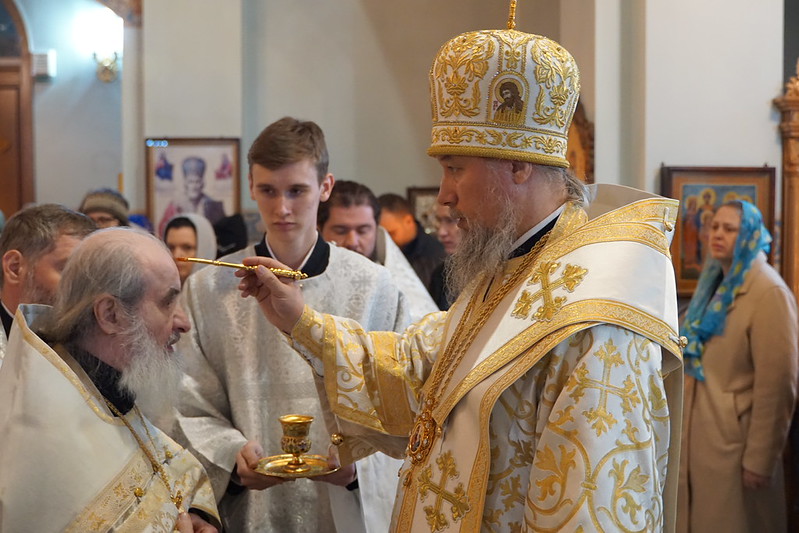 Его Высокопреосвященству сослужили: протоиерей Димитрий Руднев, протоиерей Александр Шабунин, протоиерей Александр Фролов, протоиерей Андрей Мищеряков, иеромонах Александр (Дерягин), иеромонах Даниил (Дерягин), иерей Андрей Небавский, иерей Максим Топоров, протодиакон Александр Жолобов, диакон Андрей Тесля, диакон Никита Мельничук, диакон Сергий Панченко, диакон Тимофей Кашкаров.