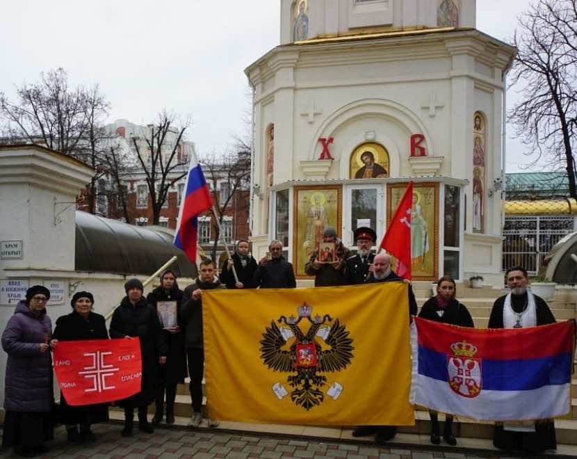 В руках у молитвенников за православных сербов-черногорцев были и Личный штандарт Его Императорского Величества Государя Императора Николая II, флаги Сербии и России и даже Знамя Победы в Великой Отечественной войне, обагрённое кровью новомучеников Церкви Русской и Церкви Сербской, которые молились об этой Победе.